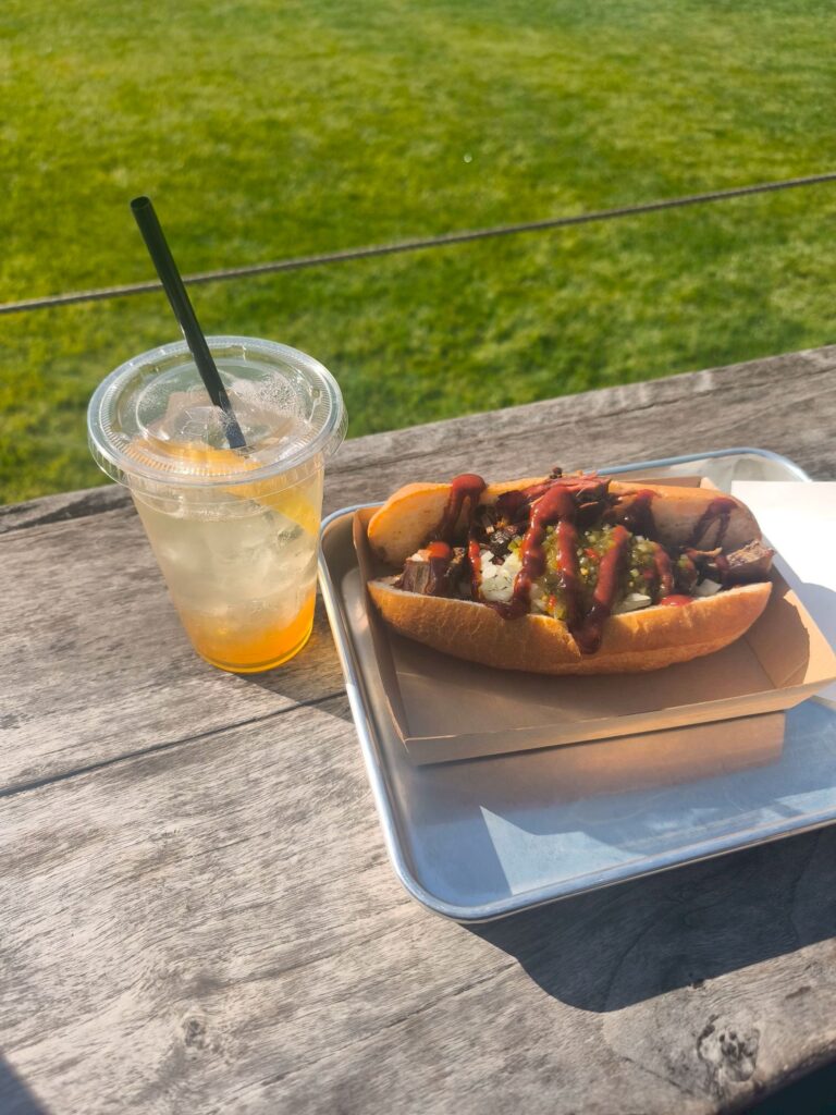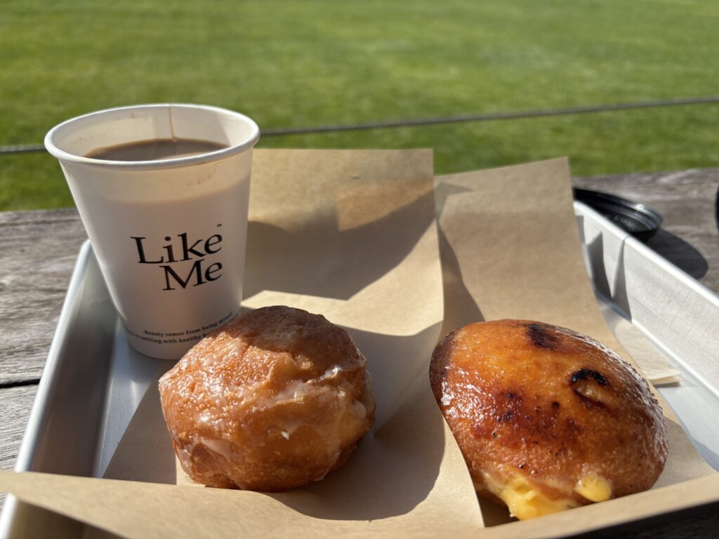 私はカフェコンレチェとドーナツ2つ、Mさんは自家製ジンジャーソーダとブリスケットサンドイッチを注文。